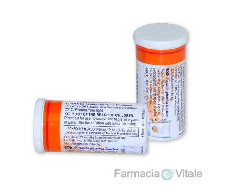 Le compresse devono essere sciolte in un bicchiere (200-300 ml) di acqua e assunte 15-20 minuti prima dell’atto.