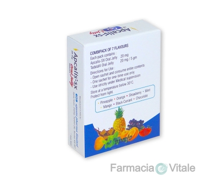 Apcalis Sx Oral Jelly ha una forma di applicazione semplice e conveniente, che lo rende facile da assumere. Il farmaco è a base di Tadalafil, noto per il suo effetto a lunga durata nel corpo. La forma migliorata consente di sperimentare meno effetti collaterali.
